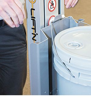 Simply press a button to raise pails from floor level to an under clearance height of 35" (or anywhere in between) in a matter seconds. Use the Pail Lifter for loading and unloading from pallets, shelves, racks, workbenches, paint shakers, delivery vehicles or any number of applications that require 5 gallon pails and buckets to be lifted and/or transported.