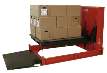 The built-in turntable accepts a wide range of pallet sizes and rotates easily so workers can load/unload from a single position without having to reach across or walk around the pallet.