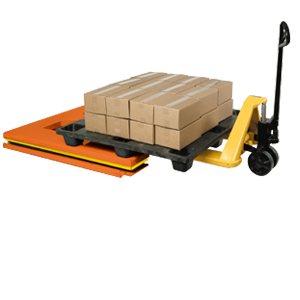 Pallet Rolls Over Platform With Pallet Truck Raised. Rests on Platform when Pallet Truck is Lowered