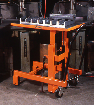 An easy to use foot pump raises this hydraulic lift a full 5 feet high. The ergonomically designed drive handle is at a comfortable height and makes this unit extremely manueverable.