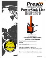 This Manual is for PowerStak Lite Model PPS1500-62NFO-21, 27 - 1500 lb. capacity lite duty, fully powered stackers.