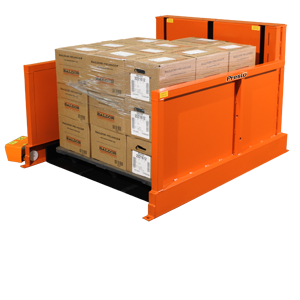 Because the P4 lowers to the floor it can be fed with a hand pallet truck making it perfect for facilities where fork lifts or stacker are unavailable.