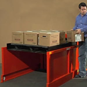 Ideal for manual pallet loading and unloading applications. Footswitch controls allow the operator to precisely position the load at the most convenient and comfortable for pallet loading or unloading. As a layer of boxes is removed from a pallet the operator can the adjust the platform height so the next layer moves into position for easy access. In pallet loading applications begin with an empty pallet on the platform raised to the full up position. As a each layer is added lower the platform and load the next layer.