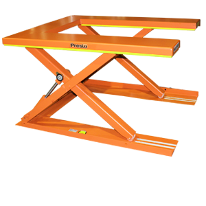 The U-Lift Roll-In Lift Table has been designed for feeding and offloading with an ordinary hand pallet truck. With a pallet truck in the fully raised position, the load can be placed on the lift. The pallet rides over the outside platform beams while the pallet truck fits in between them.