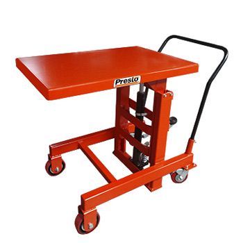 An easy to use foot pump raises this hydraulic lift a full 5 feet high. The ergonomically designed drive handle is at a comfortable height and makes this unit extremely manueverable.