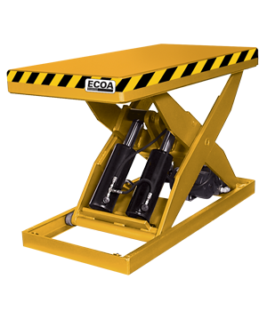 ECOA HH Heavy Duty Series Lift Tables are heavy-duty electrohydraulic scissor lifts with capacities of 8,000 to 12,000 lbs., travel distances are 36 to 60 in. with platform sizes of 36 x 48 to 48 x 102 in. All ECOA Lift Tables are designed and constructed for heavy-duty applications under the toughest working conditions, offering years of trouble-free operation.