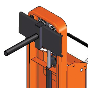 | FIFTH WHEEL & TILLER Recommended for lifts with wide straddles of high load capacities. Consists of an 8" drive wheel and spring loaded tiller handle. |