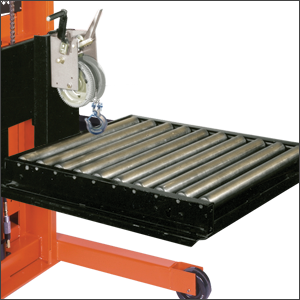 Excellent for transferring heavy object to or from a stacker with minimum effort. 3" rollers can be oriented front-to-back or side-to-side. Maximum capacity is 1,000 lbs. Requires a 24" load center. |