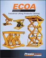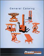 This 8 page color brochure provides a basic overview of all the products offered by Presto ECOA Lifts including stackers, lift tables, tilters, and pallet positioners.